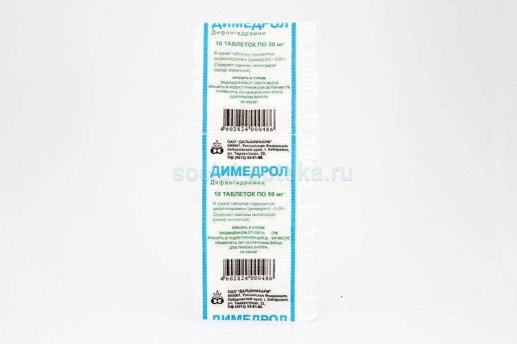 дифенгидрамин (димедрол) - 0,05 г