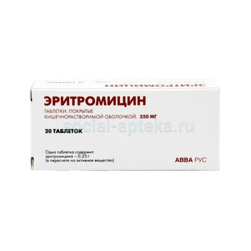 - Действующее вещество: Эритромицин