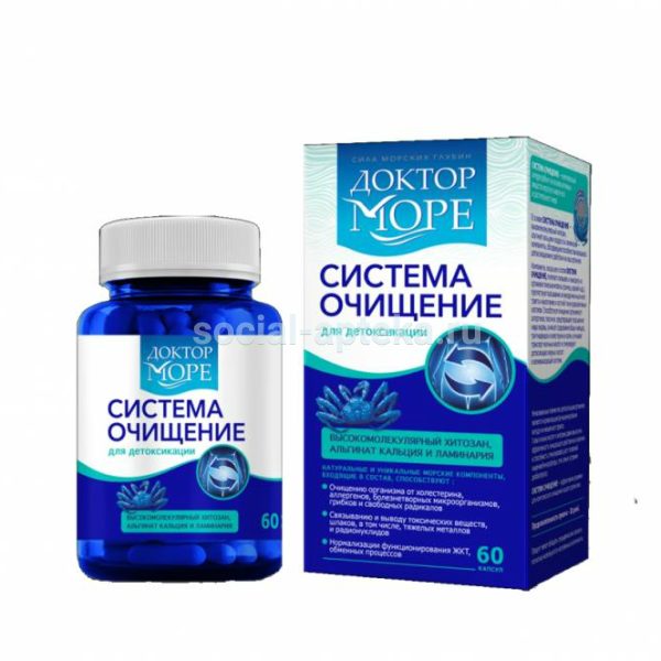Комплекс СИСТЕМА ОЧИЩЕНИЕ – это высокоэффективный комплексный энтеросорбент на основе активных веществ морского животного и растительного мира, обладающих способностью прочно связывать и выводить из организма токсические вещества, аллергены любого происхождения. Хитозан Природный полисахарид, полученный из панциря камчатского краба. Он способен активно сорбировать молекулы органической и неорганической природы, эффективен при повышенной токсической нагрузке, пищевых отравлениях и различных интоксикациях. Хитозан притягивает молекулы жира и выводит их из организма. Одна молекула хитозана выводит из организма жира в 10-12 раз больше своего молекулярного веса, поэтому его применяют в диетотерапии для снижения массы тела.В состав комплекса СИСТЕМА ОЧИЩЕНИЕ входят полностью натуральные компоненты: хитозан, альгинат кальция и ламинария.Компоненты, входящие в состав СИСТЕМЫ ОЧИЩЕНИЕ:А также: Альгинат кальция (кальциевая соль альгиновой кислоты)Ламинария японская содержит аминокислоты, растворимые полисахариды в связанном виде (фукоза, манноза, глюкоза, маннит), ламинарин, фукоидан, липиды, витамины А, B1, B2, B12, аскорбиновую кислоту, производные хлорофилла, каротиноиды, макро- и микроэлементы (калий, магний, кальций, натрий, бром, железо, молибден, марганец, медь, цинк, селен), йод в органической биодоступной форме, необходимый для устранения йододефицита в организме.А также способствует: