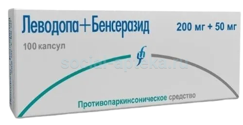 После приема внутрь леводопа быстро декарбоксилируется в дофамин как в церебральных, так и в экстрацеребральных тканях. В результате большая часть леводопы не достигает базальных ганглиев, а периферический дофамин часто вызывает побочные явления. Следовательно, необходимо блокирование экстрацеребрального декарбоксилирования леводопы, что достигается путем одновременного введения леводопы и бенсеразида, ингибитора периферической декарбоксилазы ароматических L-аминокислот. Комбинация этих веществ в соотношении 4:1 обладает такой же эффективностью, как и леводопа в высоких дозах.