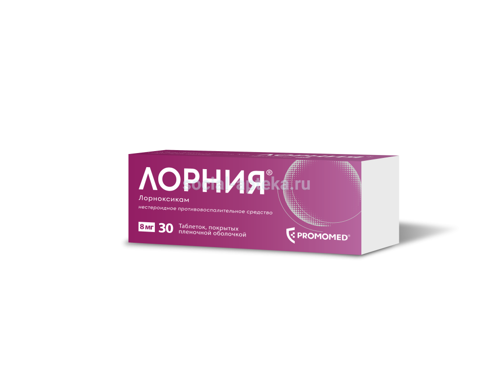 Гиперчувствительность к лорноксикаму или любому из вспомогательных веществ; Полное или неполное сочетание бронхиальной астмы, рецидивирующего полипоза носа или околоносовых пазух, ринит, ангионевротический отек, крапивница и непереносимость ацетилсалициловой кислоты и других НПВП (в т. ч. в анамнезе); Тромбоцитопения; Геморрагический диатез или нарушения свертываемости крови, а также тем, кто перенес операции, сопряженные с риском кровотечения или неполного гемостаза; Период после проведения аортокоронарного шунтирования; Декомпенсированная сердечная недостаточность; Эрозивно-язвенные изменения слизистой желудка или 12-перстной кишки, активное желудочно-кишечное кровотечение; цереброваскулярное или иное кровотечение; Желудочно-кишечные кровотечения или перфорация язвы в анамнезе, связанные с приемом НПВП; Активная пептическая язва или рецидивирующая пептическая язва в анамнезе; Воспалительные заболевания кишечника (болезнь Крона, неспецифический язвенный колит) в фазе обострения; Тяжёлая печёночная недостаточность; Выраженная почечная недостаточность (уровень сывороточного креатинина более 700 мкмоль/л), прогрессирующие заболевания почек, подтвержденная гиперкалие-мия; Беременность в сроке более 20 недель и период грудноговскармливания; Непереносимость лактозы и глюкозно-галактозная мальабсорбция; Пациентам в возрасте до 18 лет (из-за недостаточного клинического опыта). С осторожностью При следующих нарушениях препарат ЛОРНИЯ® следует назначать только после тщательной оценки ожидаемой пользы терапии и возможного риска: Нарушение функции почек: легкой степени (креатинин сыворотки 150-300 мкмоль/л) и умеренной степени (креатинин сыворотки 300-700 мкмоль/л), так как поддержание почечного кровотока зависит от уровня почечных простагландинов. Прием препарата ЛОРНИЯ следует прекратить в случае ухудшения функции почек в процессе лечения. Контроль функции почек должен осуществляться у пациентов, которым было выполнено обширное оперативное вмешательство, у пациентов с сердечной недостаточностью, получающих диуретики, а также в случае применения препаратов, обладающих доказанной или предполагаемой нефротоксичностью. Нарушение системы свертывания крови: рекомендовано тщательное клиническое наблюдение и оценка лабораторных показателей, например, активированного частичного тромбинового времени (АЧТВ). Нарушение функции печени (цирроз тканей печени): следует проводить регулярное клиническое наблюдение и оценку лабораторных показателей, так как при лечении препаратом ЛОРНИЯ® в суточной дозе 12-16 мг возможна кумуляция препарата. Длительное лечение (более 3-х месяцев): рекомендуется регулярная оценка лабораторных показателей крови (гемоглобин), функции почек (креатинин) и ферментов печени. Пациенты старше 65 лет: рекомендуется контроль функции печени и почек. Применять с осторожностью у пожилых лиц в послеоперационном периоде. Необходимо избегать одновременного приема с другими HПBП, включая селективные ингибиторы циклооксигеназы-2 (ЦОГ-2). Нежелательные эффекты можно минимизировать, используя наименьшую эффективную дозу препарата в течение наименьшего промежутка времени, достаточного для контроля симптомов. Желудочно-кишечное кровотечение, язва, перфорация, которые отмечались ранее при применении всех НПВ