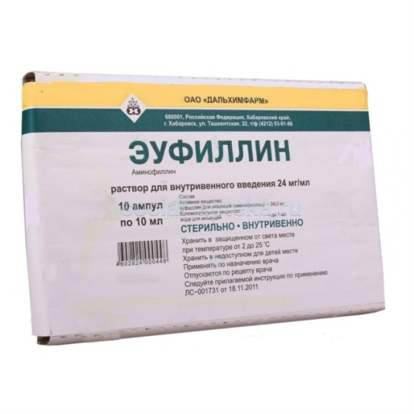 Действующее вещество: 24 мг аминофиллина.