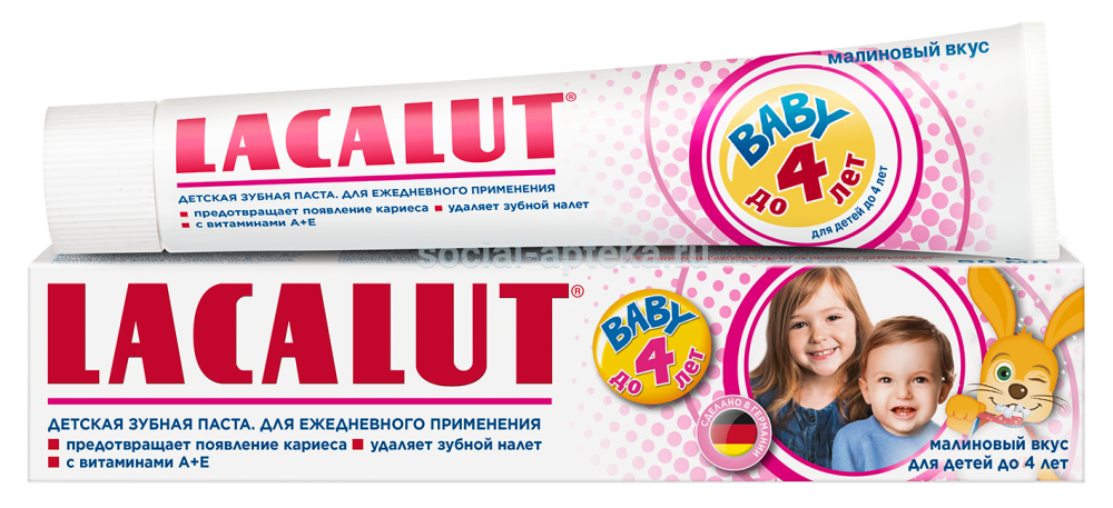 LACALUT baby специально разработан для детских молочных зубов. Без сахара, с витаминами А и Е. Малиновый вкус. Безопасна при случайном проглатывании. Зубная паста LACALUT baby производится на фармацевтическом заводе в Германии.