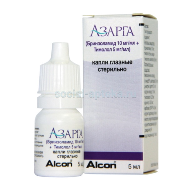 Препарат АЗАРГА содержит два активных вещества: бринзоламид и тимолола малеат, которые снижают повышенное внутриглазное давление, в первую очередь, за счет снижения секреции внутриглазной жидкости, однако различными путями. Комбинированное действие бринзоламида и тимолола превышает действие каждого вещества в отдельности для снижения внутриглазного давления.