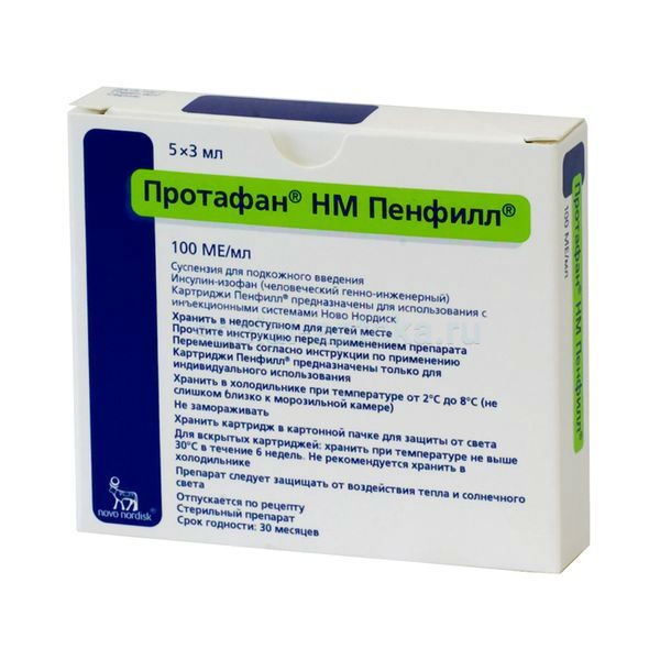 - Действующее вещество: Инсулин-изофан [человеческий генно-инженерный]