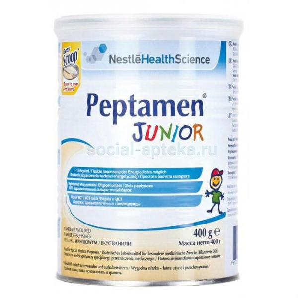 Продукт Пептамен Юниор – полноценное сбалансированное полуэлементное питание на основе пептидов для детей от 1 года до 10 лет с нарушением желудочно-кишечного тракта (ЖКТ). Смесь Пептамен Юниор является продуктом выбора в случаях непереносимости стандартных смесей (например, на основе казеина). Кроме того, именно этому продукту следует отдавать предпочтение, если маленький пациент не нуждается в высококалорийной диете. -Острая мальабсорбция, коррекция нутритивного статуса при недостаточности питания; -Гастроэзофагиальный рефлюкс; -Отсутствие эффекта от продукта с интектным белком, переход с ПП на ранее ЭП, терапия после операции; -Неврологические нарушения; -Муковисцидоз; -ВИЧ, СПИД; -Болезнь Крона; -Синдром короткой кишки, диарея; -Задержка роста и развития ребенка после перенесенного заболевания; -Хроническая мальабсорбция.