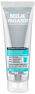 MILK ORGANIC ЭКСТРА ПИТАТЕЛЬНЫЙ МОЛОЧНЫЙ БИО БАЛЬЗАМ ДЛЯ ВОЛОС глубоко питает, делает волосы сильными и крепкими, предотвращает ломкость и сечение волос, делая их гладкими и эластичными по всей длине, способствует сохранению влаги, делает волосы мягкими, блестящими и послушными, активно увлажняет и насыщает волосы витаминами и микроэлементами. Содержит PRO-эластин, Фито-коллаген, 3D-молочные протеины, 100% натуральное органическое масло кокоса и био масло греческого миндаля.