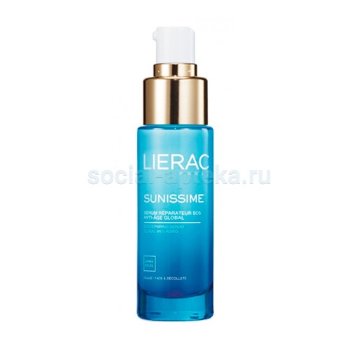 • Чтобы восстановить кожу после пребывания на солнце и предупредить фотостарение, используйте Lierac Sunissime Sérum Réparateur SOS. Благодаря интеллектуальной текстуре с крио-эффектом сыворотка моментально успокаивает кожу и охлаждает ее поверхность на 3,4 градуса. Глубокое увлажнение способствует разглаживанию мелких морщинок, возвращает упругость и смягчает эпидермис. После 28 дней использования ускоряется обновление кожи, она становится гладкой и плотной, равномерный загар держится дольше. Восстанавливающая Сыворотка SOS Лиерак Саниссим обладает приятным цветочным ароматом и прекрасно распределяется по коже.Активные компоненты:
