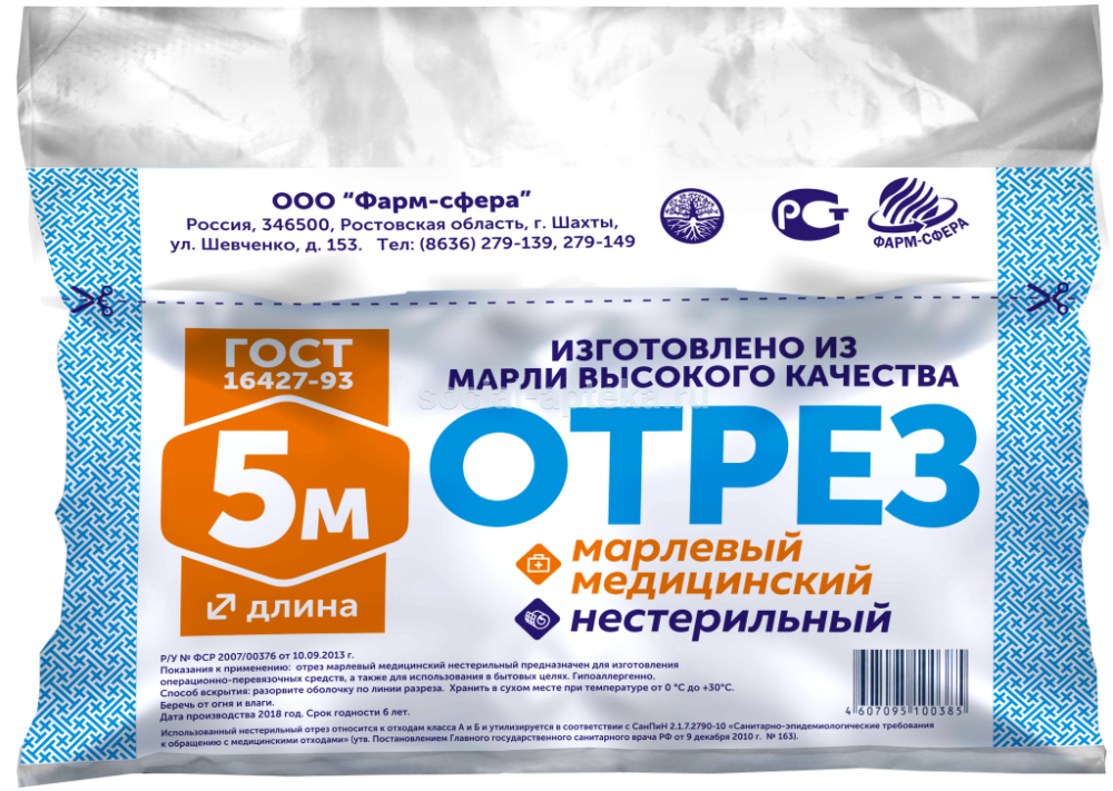 Формы выпуска Марля мед отрез 5м пл28 (Фармсфера)