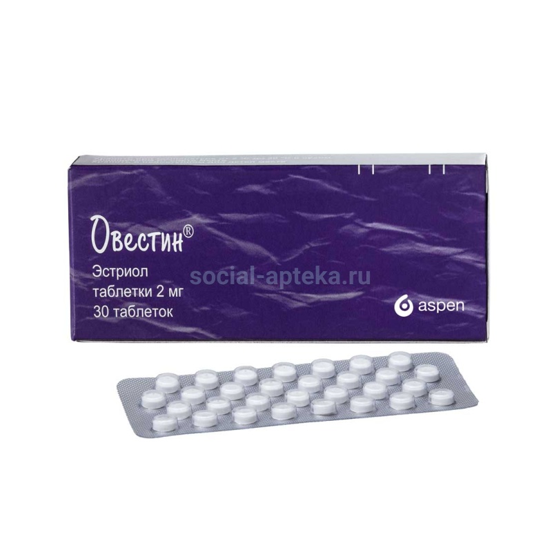 Фармакотерапевтическая группа: Эстрогены. Код АТХ: G03CA04 Фармакологические свойства Фармакодинамика Овестин® содержит естественный женский половой гормон эстриол. В период, предшествующий менопаузе и в постменопаузу (естественную или хирургическую), эстриол применяют для лечения симптомов, вызванных дефицитом эстрогенов. Эстриол обладает селективным действием преимущественно на шейку матки, влагалище, вульву и особенно эффективен для лечения урогенитальных симптомов, вызванных эстрогенной недостаточностью. В случаях атрофии слизистой влагалища эстриол вызывает усиление пролиферации эпителия влагалища и шейки матки, стимулирует его кровоснабжение, способствует восстановлению эпителия, нормальной микрофлоры и физиологического рН влагалищной среды, оказывает влияние на качество и количество цервикальной слизи. В результате повышается резистентность клеток эпителия к инфекции и воспалению. В отличие от других эстрогенов эстриол обладает кратковременным эффектом, поскольку он на короткое время задерживается в ядрах клеток эндометрия и при соблюдении рекомендованного режима дозирования не следует ожидать пролиферации эндометрия. В связи с этим циклическое применение прогестагенов не обязательно, постменопаузальные кровотечения отмены не возникают. Фармакокинетика После приема внутрь эстриол быстро и почти полностью всасывается в желудочно- кишечном тракте. Максимальная концентрация неконъюгированного эстриола в плазме достигается в течение 1 часа после приема. Около 90% эстриола связывается с альбумином плазмы, и, в отличие от других эстрогенов, эстриол почти не связывается с глобулином, связывающим половые гормоны (ГСПГ). Метаболизм эстриола состоит, главным образом, из конъюгации и деконъюгации в ходе кишечно-печеночной циркуляции. Эстриол, конечный продукт метаболизма, выводится в основном с мочой в конъюгированной форме. Лишь небольшая часть (2%) выводится с калом, преимущественно в виде неконъюгированного эстриола.