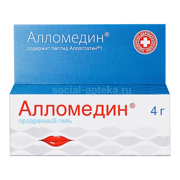 В состав препарата входит синтетический пептид Аллостатин 1, который предназначен для защиты кожи и слизистых от вирусов, вызывающих воспалительные процессы и новообразования эпителиальных тканей.Аллостатины – новая группа антивирусных препаратов, разработанная на основе природных пептидов аллоферонов.Аллостатин 1 сохраняет все свойства природных аллоферонов и в то же время обладает рядом преимуществ, которые делают его применение особенно перспективным в дерматологии и косметологии. Проникая в ткань эпителия, Аллостатин 1 активирует распознавание иммунокомпетентными клетками патологически измененных клеток кожи и запускает каскад защитных реакций, направленных на подавление репликации и распространения вируса. При этом Аллостатин 1 не оказывает повреждающего действия на окружающие нормальные клетки. Устраняя источник инфекции и стимулируя последующую регенерацию эпителия, Алломедин обеспечивает быстрое восстановление нормального состояния кожи.Алломедин оптимально ухаживает за кожей при появлении первых симптомов герпеса и восстанавливает ее естественный вид. В этом случае неприятные субъективные ощущения (жжение, зуд, отёк, покраснение) исчезают уже через несколько часов и развитие герпетических высыпаний может прекратиться. Если период первых симптомов обострения пропущен, для полного восстановления может потребоваться 3-6 дней. Опыт применения Алломедина показывает, что частым результатом его использования является длительное сохранение естественного физиологического состояния кожи.Алломедин оптимально ухаживает за кожей и слизистыми оболочками при проявлениях папилломавирусной инфекции. Он способен привести к устранению внешних проявлений папилломавирусной инфекции и препятствовать возникновению повторных проявлений.
