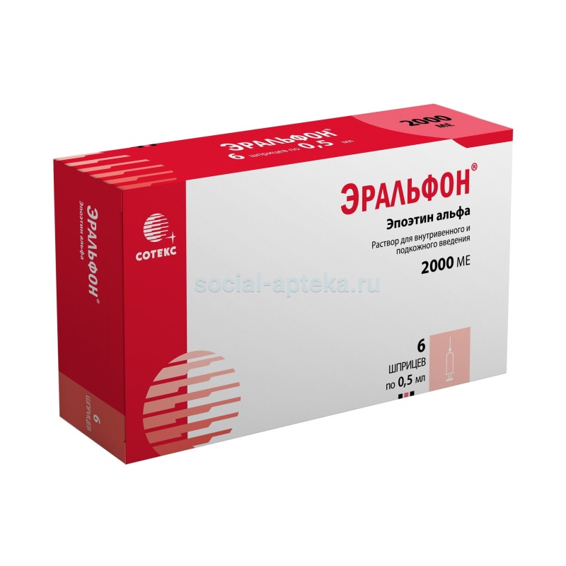 В начале лечения рекомендуемая доза препарата составляет 50 МЕ/кг 3 раза в неделю. В процессе подбора доза препарата Эральфон® увеличивается, если гемоглобин повышается менее чем на 10 г/л в месяц.