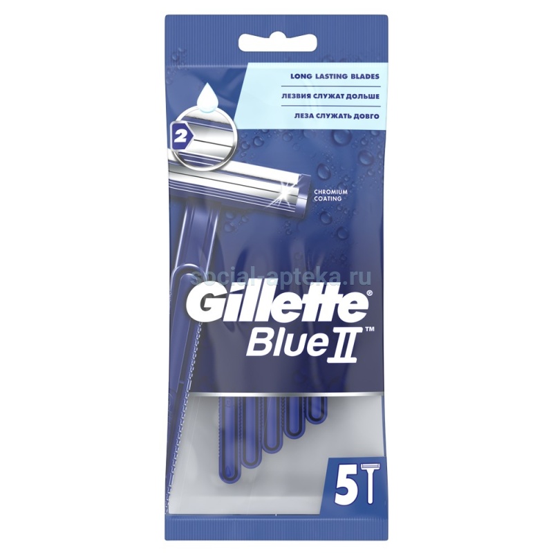 Одноразовая мужская бритва Gillette BlueII оснащена двумя лезвиями с хромовым покрытием, которые долго остаются острыми. Смазывающая полоска обеспечивает мягкое скольжение бритвы. Головка бритвы зафиксирована.