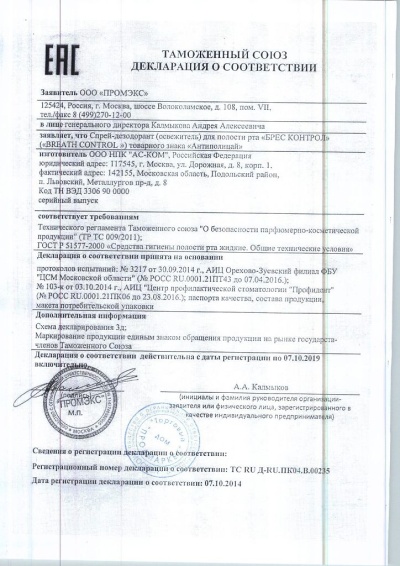 Описание и свойства АНТИПОЛИЦАЙ СПРЕЙ – мгновенно уничтожает неприятные запахи изо рта. В основе продукта компоненты способные поглощать молекулы одоранты (от латинского odor – запах), которые являются носителями запахов и находятся в слизистой оболочке верхних дыхательных путей.