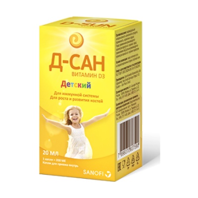 СОСТАВ (НА 1 МЛ): Масло арахиса, ароматизатор пищевой малиновый, альфа-токоферола ацетат (антиоксидант), холекальциферол (витамин D). Содержание в 1 капле 5 мкг (200 ME)