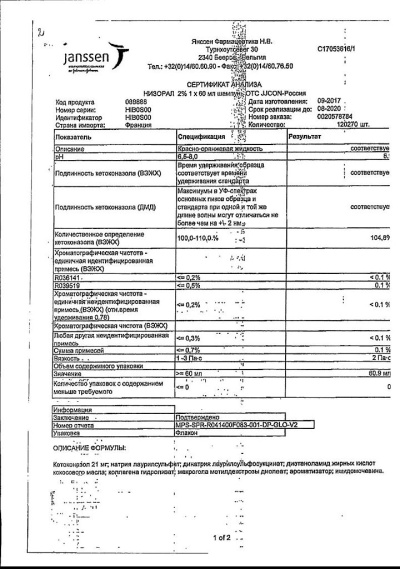 Шампунь Низорал 2 % обычно хорошо переносится. Как и при использовании других шампуней может отмечаться местное раздражение, зуд или контактный дерматит (вследствие раздражения или аллергической реакции) Волосы могут становиться жирными или сухими. Однако при использовании шампуня Низорал 2 % такие явления отмечаются редко.В отдельных случаях, в основном у пациентов с химически поврежденными или седыми волосами, отмечалось изменение цвета волос.