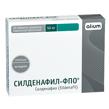 Действующее вещество: силденафила цитрат - 70,2400 мг (в пересчете на силденафил основание - 50,0000 мг).