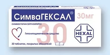 СимваГЕКСАЛ - гиполипидемическое.Активный метаболит ингибирует 3-гидрокси−3-метил-глутарил-КоА-редуктазу (ГМГ-КоА-редуктазу), фермент, катализирующий начальную реакцию образования мевалоната из ГМГ-КоА. Поскольку превращение ГМГ-КоА в мевалонат представляет собой ранний этап синтеза холестерина, то применение симвастатина не вызывает накопления в организме потенциально токсичных стеролов. ГМГ-КоА легко метаболизируется до ацетил-КоА, который участвует во многих процессах синтеза в организме.Вызывает понижение содержания в плазме триглицеридов (ТГ), липопротеидов низкой плотности (ЛПНП), липопротеидов очень низкой плотности (ЛПОНП) и общего холестерина (в случаях гетерозиготной семейной и несемейной форм гиперхолестеринемии при смешанной гиперлипидемии, когда повышенное содержание холестерина является фактором риска).Повышает содержание липопротеидов высокой плотности (ЛПВП) и уменьшает соотношение ЛПНП/ЛПВП и общий холестерин/ЛПВП.ФармакодинамикаЭффект проявляется через 2 нед от начала приема, максимальный терапевтический эффект достигается через 4–6 нед. Действие сохраняется при продолжении лечения, при прекращении терапии содержание холестерина постепенно возвращается к исходному уровню.ФармакокинетикаАбсорбция симвастатина высокая. После приема внутрь Cmax в плазме крови достигается примерно через 1,3–2,4 ч и снижается на 90% через 12 ч. Связывание с белками плазмы крови — около 95%.Метаболизируется в печени. Наблюдается эффект «первого прохождения» через печень (гидролизуется с образованием активного производного — бета-гидроксикислоты, а также других активных и неактивных метаболитов). T1/2 активных метаболитов — 1,9 ч.Выводится преимущественно с каловыми массами (60%) в виде метаболитов, около 10–15% — почками в неактивной форме.