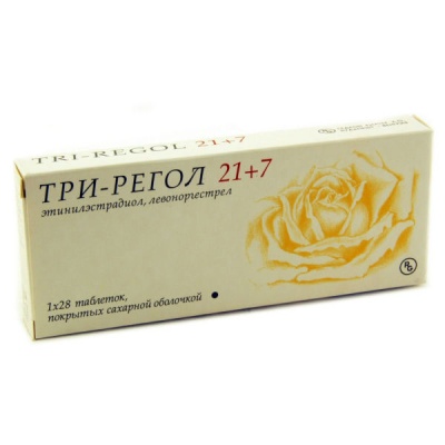Фармакодинамика Комбинированный (трехфазный) пероральный контрацептивный эстроген-гестагенный препарат. При приеме угнетает гипофизарную секрецию гонадотропных гормонов. Последовательный прием таблеток, покрытых оболочкой, препарата, содержащих разные количества гестагена (левоноргестрел) и эстрогена (этинилэстрадиол) обеспечивает концентрации этих гормонов в крови, близкие к их концентрациям во время нормального менструального цикла, и способствует секреторному превращению эндометрия. Контрацептивный эффект связан с несколькими механизмами. Под влиянием левоноргестрела наступает блокада высвобождения рилизинг-факторов (лютеинизирующего и фолликулостимулирующего гормонов) гипоталамуса, угнетение секреции гипофизом гонадотропных гормонов, что ведет к торможению созревания и выхода готовой к оплодотворению яйцеклетки (овуляции). Этинилэстрадиол сохраняет высокую вязкость шеечной слизи (затрудняет попадание сперматозоидов в полость матки). Наряду с контрацептивным эффектом нормализуется менструальный цикл, благодаря восполнению уровня эндогенных гормонов гормональными компонентами таблеток Три-Регол®. В семидневные периоды, когда следует очередной перерыв в приёме препарата, наступает маточное кровотечение.Фармакокинетика Левоноргестрел быстро абсорбируется (меньше 4 ч). У левоноргестрела отсутствует эффект «первого прохождения» через печень. Период полувыведения составляет 8-30 ч (в среднем 16 ч). Большая часть левоноргестрела в крови связывается с альбумином и с глобулином, связывающим половые гормоны. Этинилэстрадиол быстро и почти полностью абсорбируется из желудочно-кишечного тракта. Максимальная концентрация в плазме достигается в интервале 1-1,5 ч. Период полувыведения составляет 26±6,8 ч. Этинилэстрадиолу присущ эффект «первого прохождения» через печень (т.н. «first pass» эффект). Метаболизм осуществляется в печени и кишечнике. При приеме внутрь этинилэстрадиол выделяется в течение 12 ч из плазмы крови. Метаболиты этинилэстрадиола: растворимые в воде производные сульфатной или глюкуронидной конъюгации, поступают в кишечник с желчью, где подвергаются дезинтеграции с помощью кишечных бактерий. 60% левоноргестрела выводится почками, 40% - через кишечник, 40% этинилэстрадиола выводится почками и 60% - через кишечник.