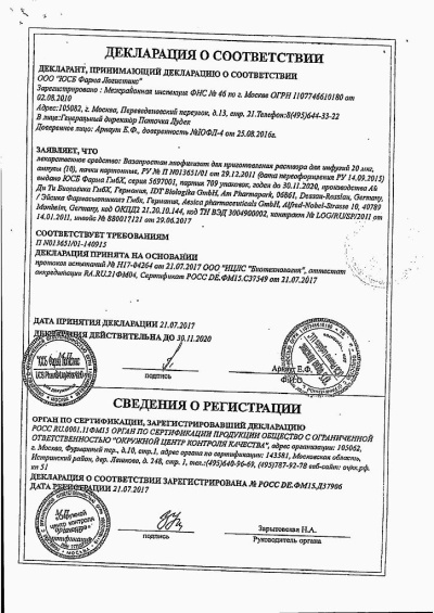 Лиофилизат для приготовления инфузионного раствора.